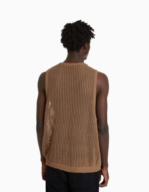 גברים עליונית רשת ללא שרוולים גָמָל 2L6JD2830 Bershka הַלבָּשָׁה