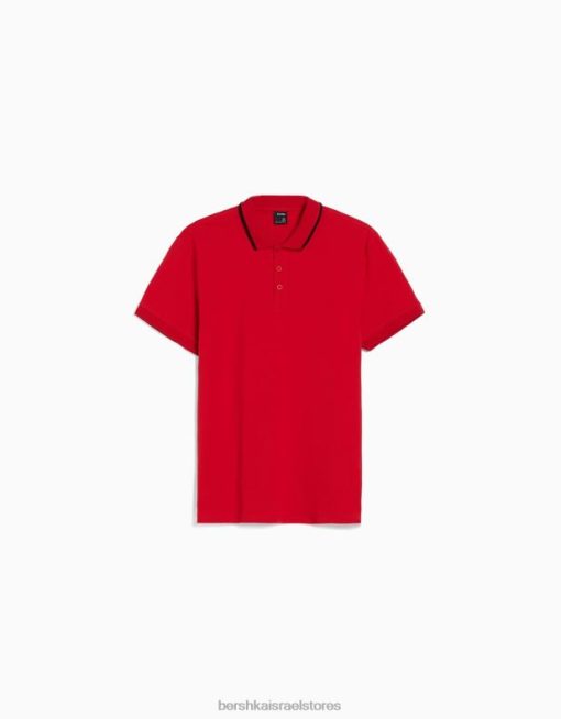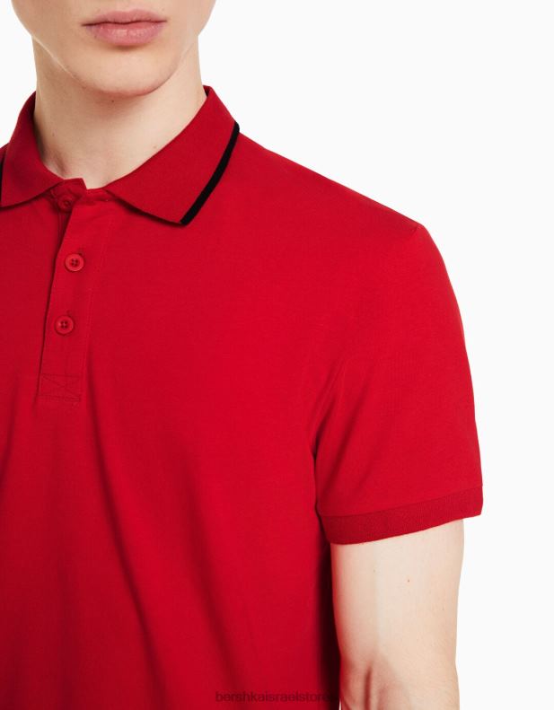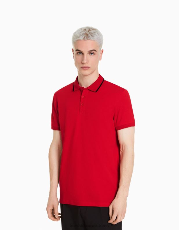 גברים פולו עם שרוולים קצרים עם פסים אָדוֹם 2L6JD2681 Bershka הַלבָּשָׁה