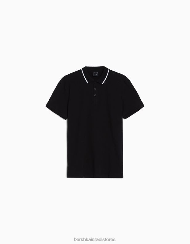 גברים פולו עם שרוולים קצרים עם פסים שָׁחוֹר 2L6JD2678 Bershka הַלבָּשָׁה