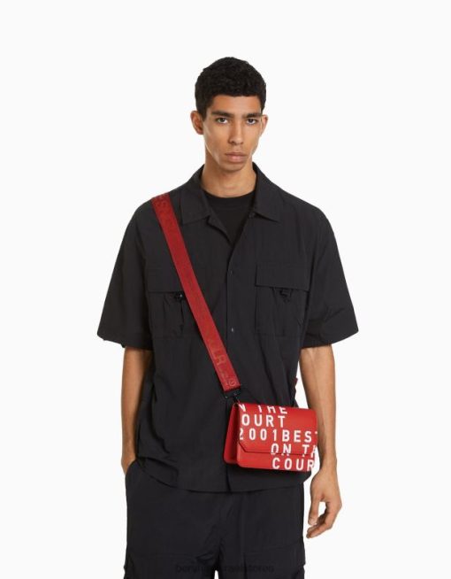 גברים תיק מוצלב עם כיתוב אָדוֹם 2L6JD3582 Bershka אביזרים