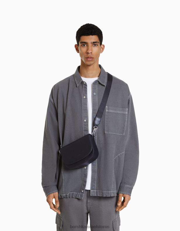גברים תיק crossbody עם דש שָׁחוֹר 2L6JD3604 Bershka אביזרים