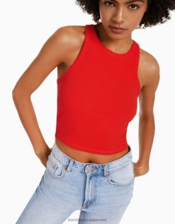 לִשְׁנֵי הַמִינִים גופייה מצולעת אָדוֹם 2L6JD3849 Bershka הַלבָּשָׁה
