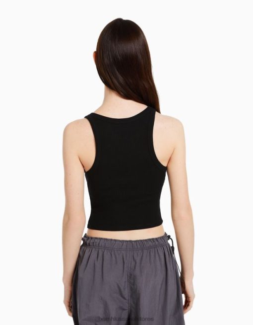 לִשְׁנֵי הַמִינִים גופייה מצולעת שָׁחוֹר 2L6JD3854 Bershka הַלבָּשָׁה