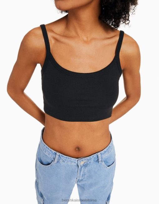 לִשְׁנֵי הַמִינִים גופייה קצוצה שָׁחוֹר 2L6JD3749 Bershka הַלבָּשָׁה