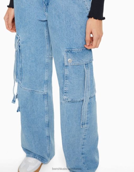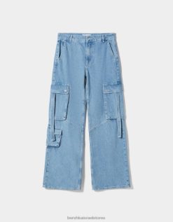 לִשְׁנֵי הַמִינִים ג’ינס מטען רב כיסים כחול בהיר 2L6JD3914 Bershka הַלבָּשָׁה