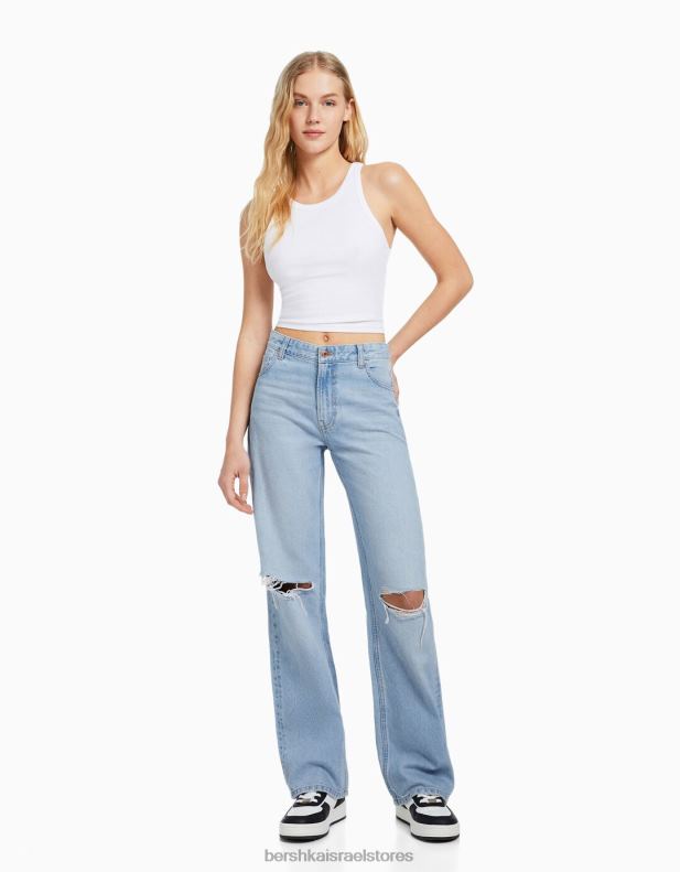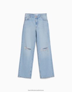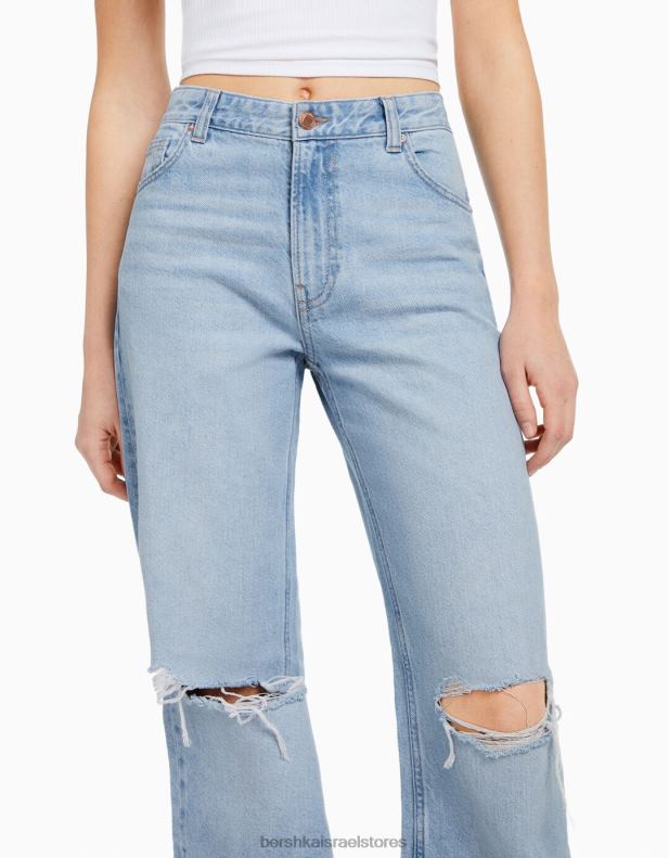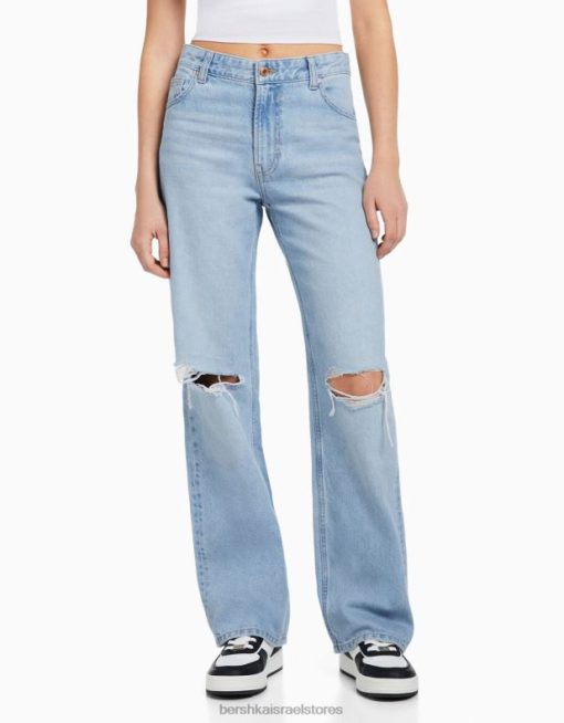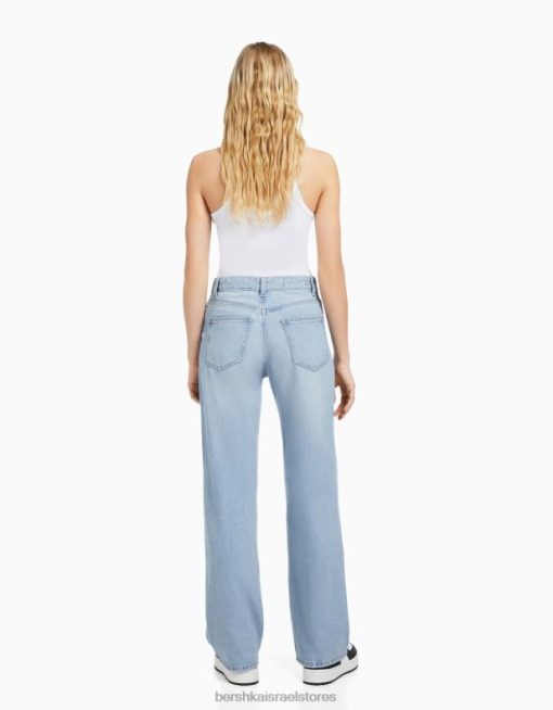 לִשְׁנֵי הַמִינִים ג’ינס משנות ה-90 עם רגליים רחבות כחול בהיר 2L6JD3956 Bershka הַלבָּשָׁה