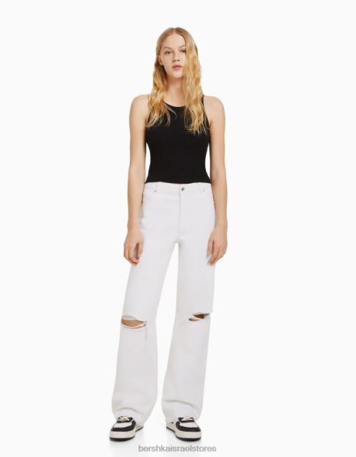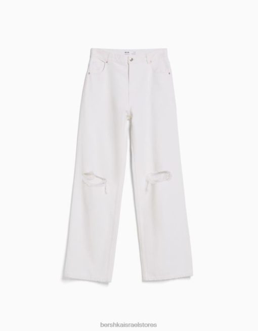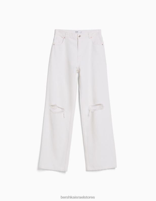 לִשְׁנֵי הַמִינִים ג’ינס משנות ה-90 עם רגליים רחבות לבן 2L6JD3955 Bershka הַלבָּשָׁה