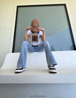 לִשְׁנֵי הַמִינִים ג’ינס מתרחב כחול בהיר 2L6JD3928 Bershka הַלבָּשָׁה