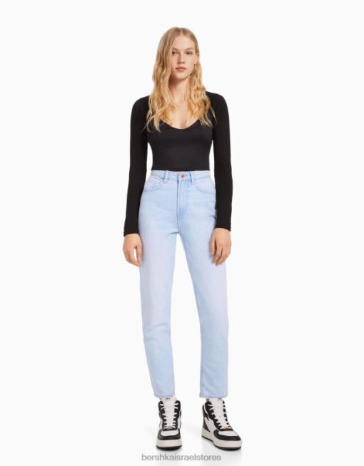 לִשְׁנֵי הַמִינִים ג’ינס של אמא כחול בהיר 2L6JD3941 Bershka הַלבָּשָׁה