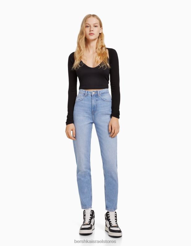 לִשְׁנֵי הַמִינִים ג’ינס של אמא כחול בהיר 2L6JD3938 Bershka הַלבָּשָׁה