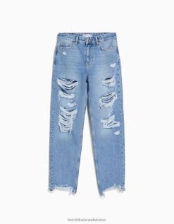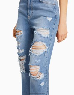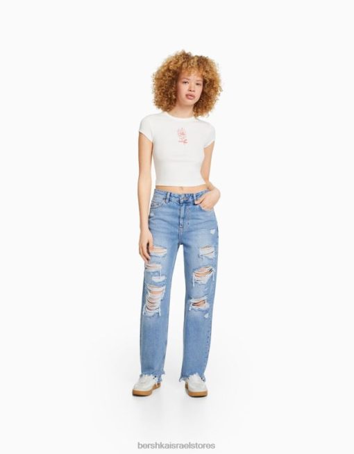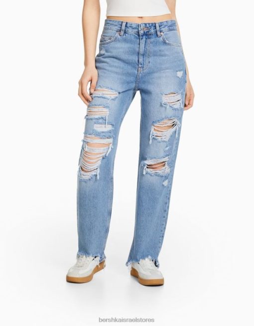 לִשְׁנֵי הַמִינִים ג’ינס של אמא עם רגליים ישרות קצוצות כחול בהיר 2L6JD3961 Bershka הַלבָּשָׁה