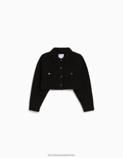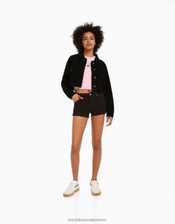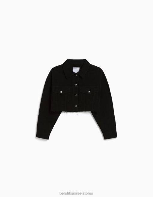 לִשְׁנֵי הַמִינִים ז’קט ג’ינס קצוץ שָׁחוֹר 2L6JD4153 Bershka הַלבָּשָׁה