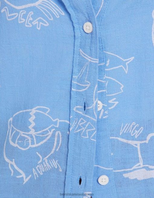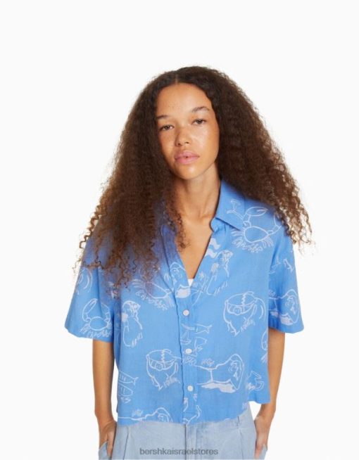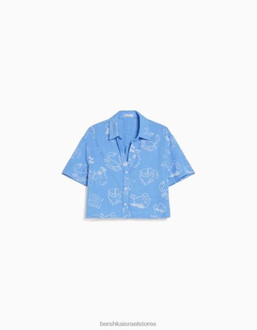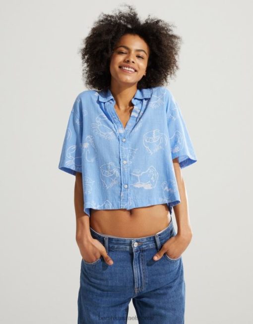 לִשְׁנֵי הַמִינִים חולצה כפרית עם שרוולים קצרים כְּחוֹל 2L6JD3793 Bershka הַלבָּשָׁה
