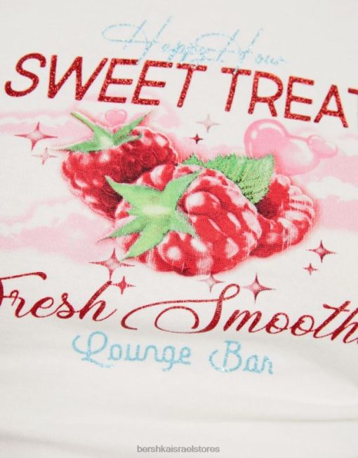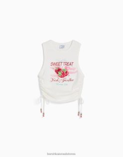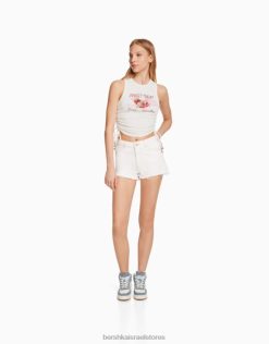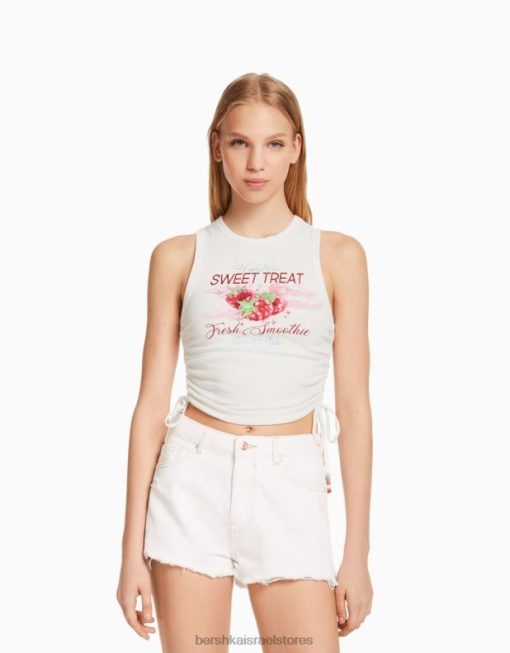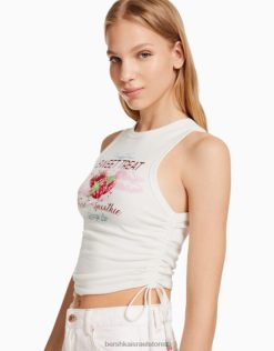 לִשְׁנֵי הַמִינִים חולצת טי מודפסת ללא שרוולים עם צדדים מכווצים צבע קרם 2L6JD3700 Bershka הַלבָּשָׁה