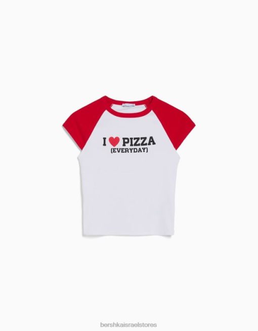 לִשְׁנֵי הַמִינִים חולצת טי מודפסת עם שרוולים קצרים לבן 2L6JD3710 Bershka הַלבָּשָׁה