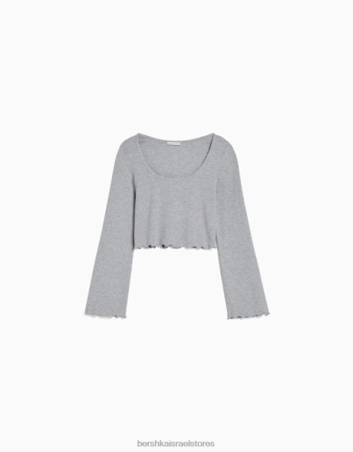 לִשְׁנֵי הַמִינִים חולצת טי עם שרוולים ארוכים עם צווארון אפור 2L6JD3818 Bershka הַלבָּשָׁה