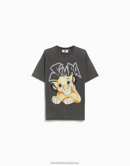 לִשְׁנֵי הַמִינִים חולצת טי עם שרוולים קצרים בהדפס סימבה אפור 2L6JD3829 Bershka הַלבָּשָׁה