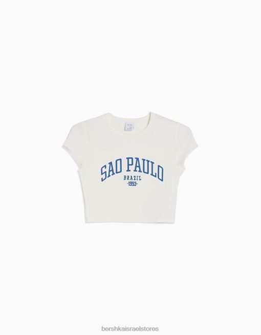 לִשְׁנֵי הַמִינִים חולצת טי שרוול קצר עם הדפס צבע קרם 2L6JD3789 Bershka הַלבָּשָׁה