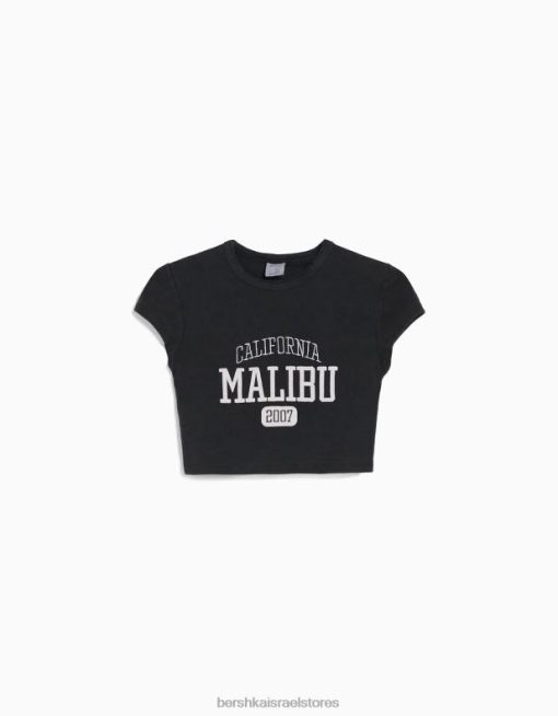 לִשְׁנֵי הַמִינִים חולצת טי שרוול קצר עם הדפס אפור כהה 2L6JD3790 Bershka הַלבָּשָׁה