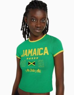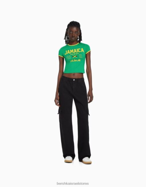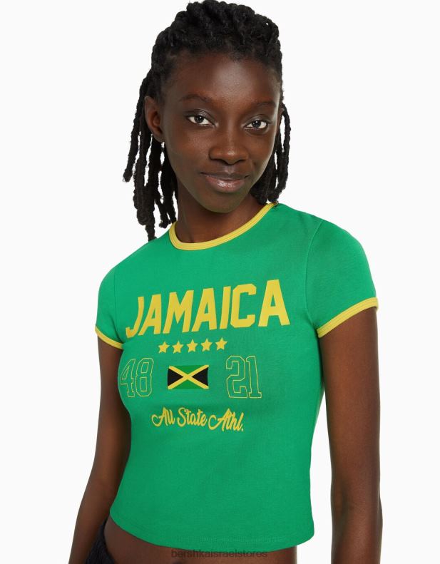 לִשְׁנֵי הַמִינִים חולצת טי שרוול קצר עם הדפס ירוק 2L6JD3733 Bershka הַלבָּשָׁה