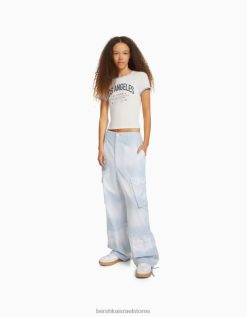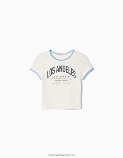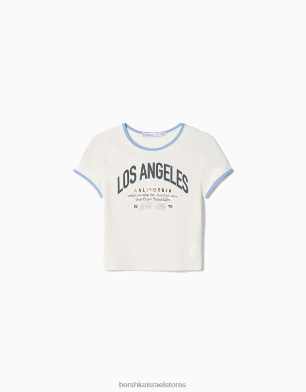 לִשְׁנֵי הַמִינִים חולצת טי שרוול קצר עם הדפס צבע קרם 2L6JD3735 Bershka הַלבָּשָׁה