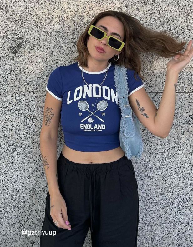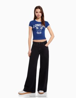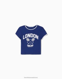 לִשְׁנֵי הַמִינִים חולצת טי שרוול קצר עם הדפס חיל הים 2L6JD3737 Bershka הַלבָּשָׁה