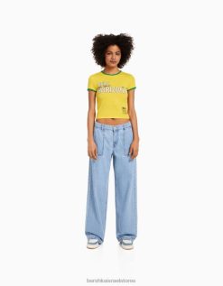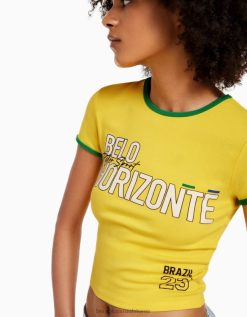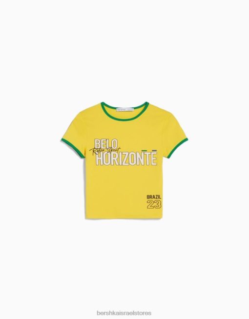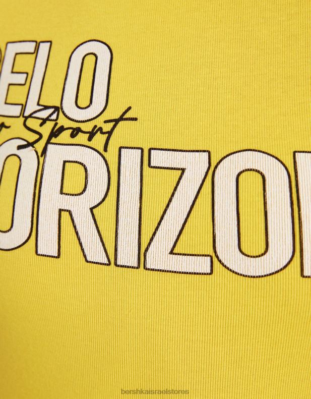 לִשְׁנֵי הַמִינִים חולצת טי שרוול קצר עם הדפס צהוב 2L6JD3732 Bershka הַלבָּשָׁה