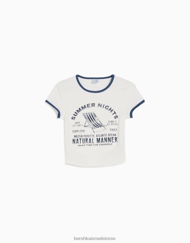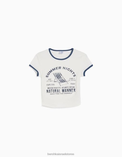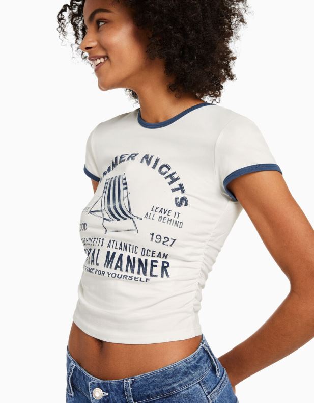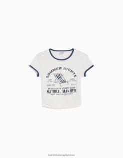 לִשְׁנֵי הַמִינִים חולצת טריקו מודפסת עם שרוולים קצרים צבע קרם 2L6JD3810 Bershka הַלבָּשָׁה