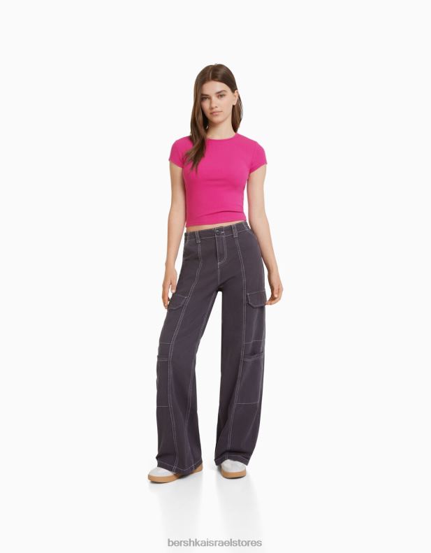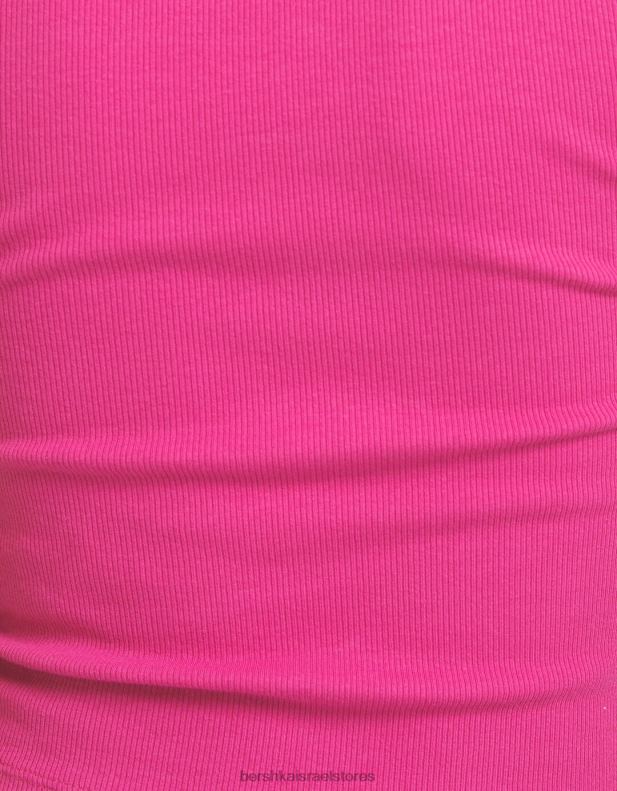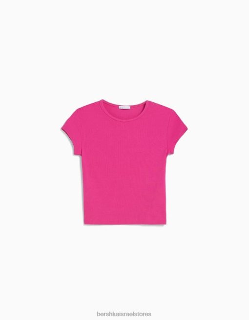 לִשְׁנֵי הַמִינִים חולצת טריקו עם שרוולים קצרים ורוד פוקסיה 2L6JD3748 Bershka הַלבָּשָׁה