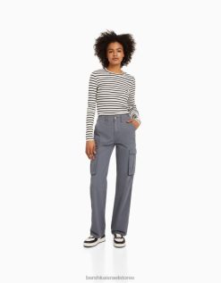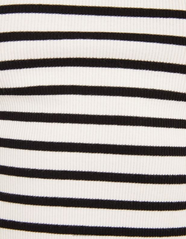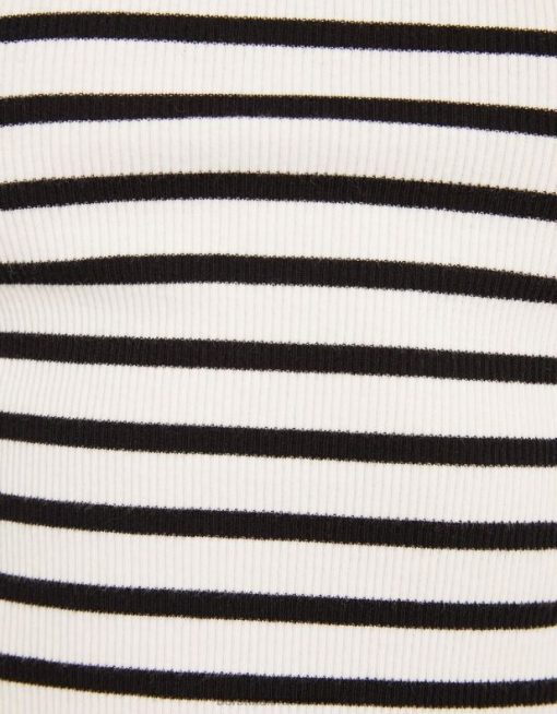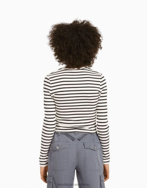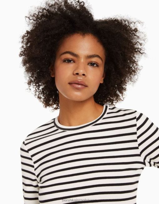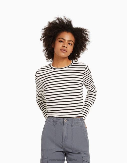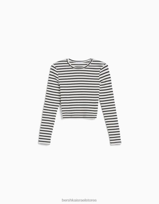 לִשְׁנֵי הַמִינִים חולצת טריקו עם שרוולים ארוכים עם צלעות לבן שחור 2L6JD3804 Bershka הַלבָּשָׁה
