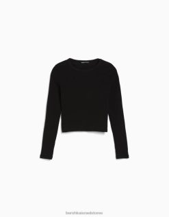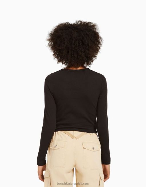 לִשְׁנֵי הַמִינִים חולצת טריקו עם שרוולים ארוכים עם צלעות שָׁחוֹר 2L6JD3863 Bershka הַלבָּשָׁה