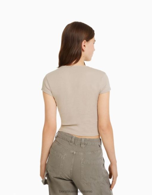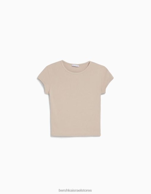 לִשְׁנֵי הַמִינִים חולצת טריקו עם שרוולים קצרים חוֹל 2L6JD3718 Bershka הַלבָּשָׁה