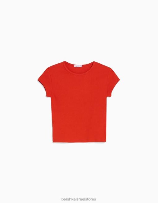 לִשְׁנֵי הַמִינִים חולצת טריקו עם שרוולים קצרים אָדוֹם 2L6JD3719 Bershka הַלבָּשָׁה