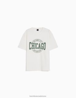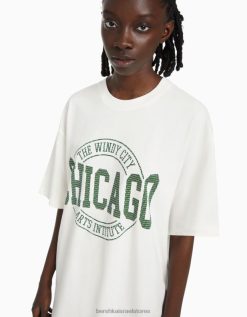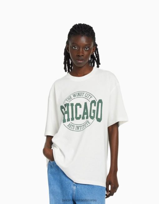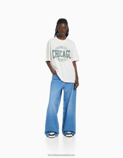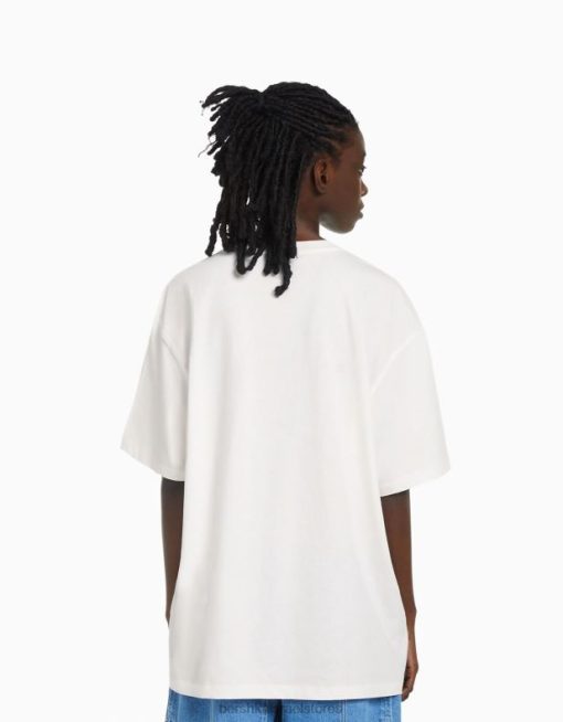 לִשְׁנֵי הַמִינִים חולצת טריקו רטרו ספורטיבית עם שרוולים קצרים בגזרה קופסה צבע קרם 2L6JD3701 Bershka הַלבָּשָׁה