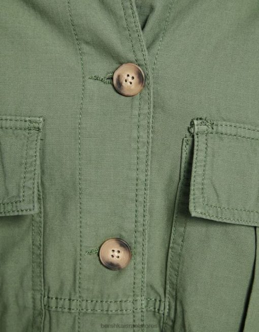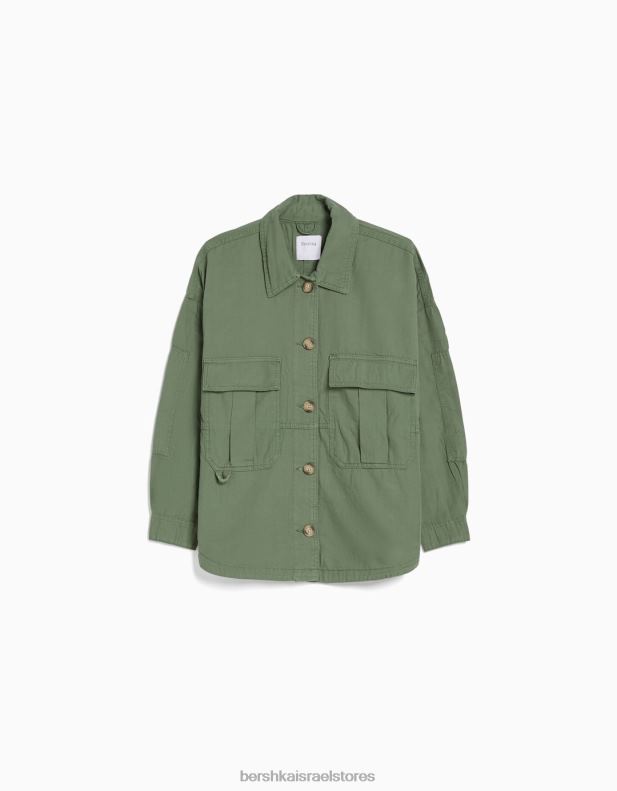 לִשְׁנֵי הַמִינִים חולצת כותנה עם שרוולים ארוכים עם כיסים חָקִי 2L6JD4163 Bershka הַלבָּשָׁה