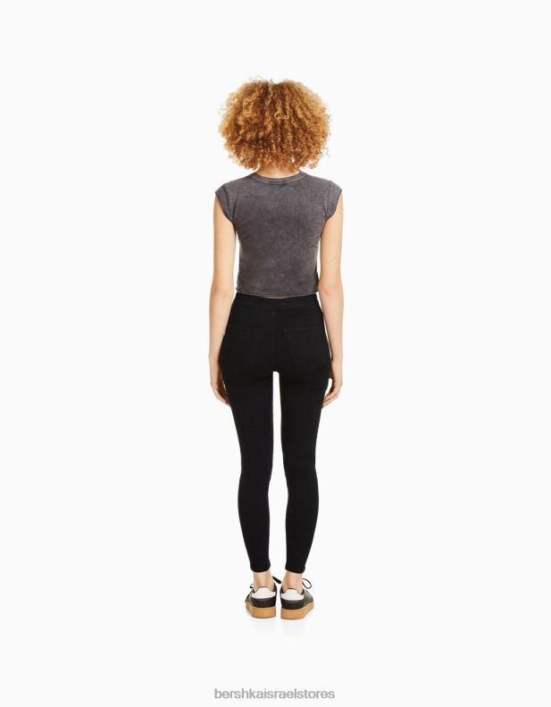 לִשְׁנֵי הַמִינִים חותלות ג’ינס גבוהות במיוחד שָׁחוֹר 2L6JD3936 Bershka הַלבָּשָׁה
