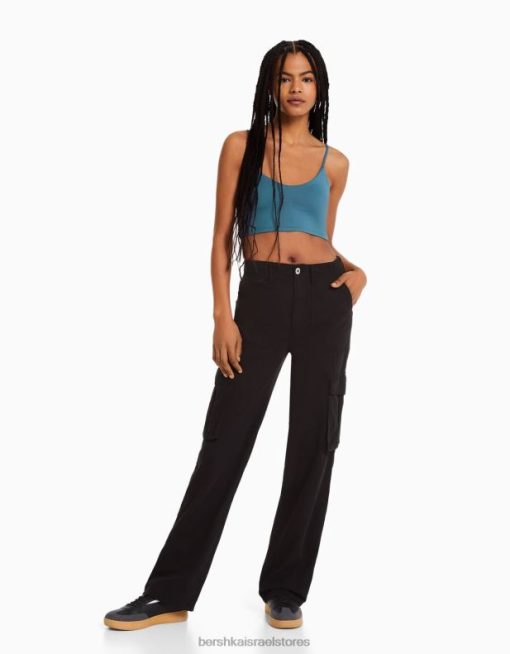 לִשְׁנֵי הַמִינִים טופ קרופ עם רצועות כְּחוֹל 2L6JD3763 Bershka הַלבָּשָׁה