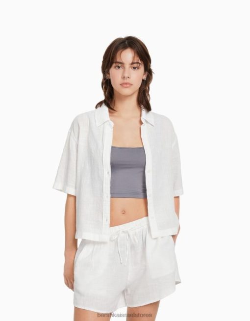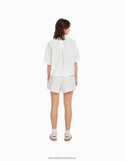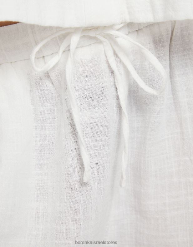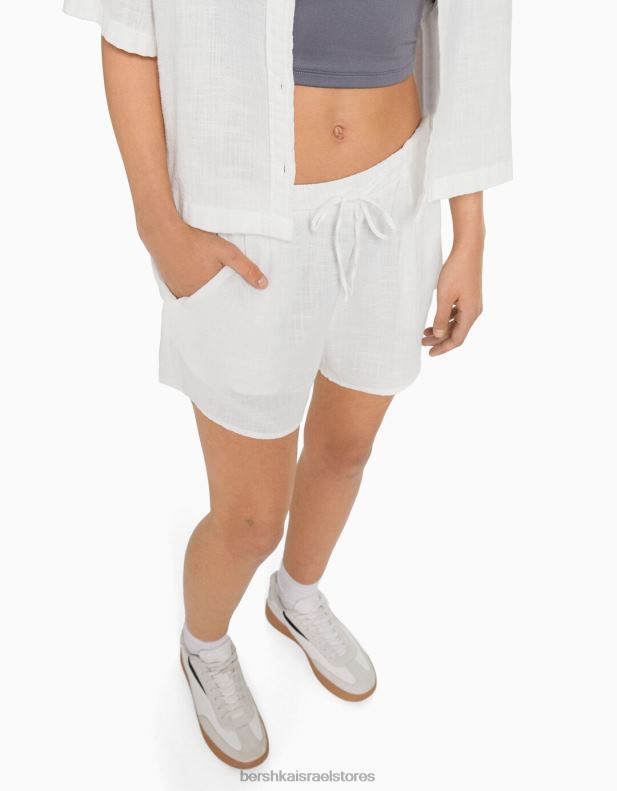 לִשְׁנֵי הַמִינִים מכנסיים קצרים כפריים עם גומי מכווץ צבע קרם 2L6JD4031 Bershka הַלבָּשָׁה