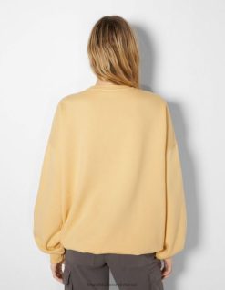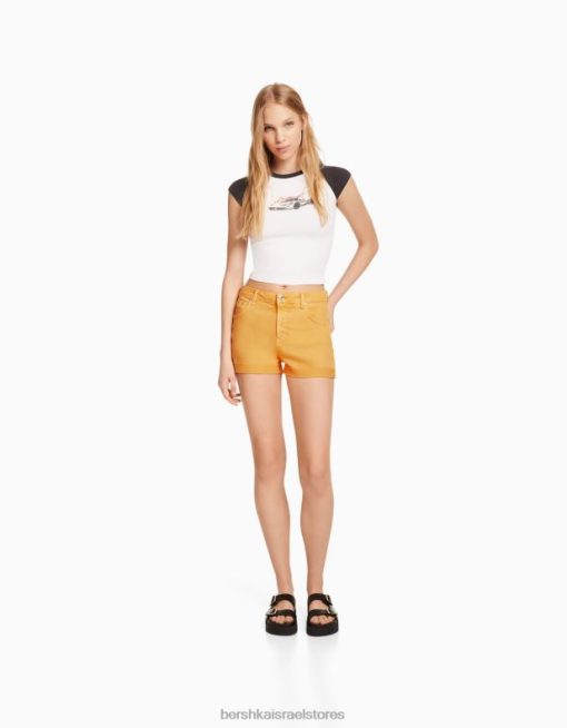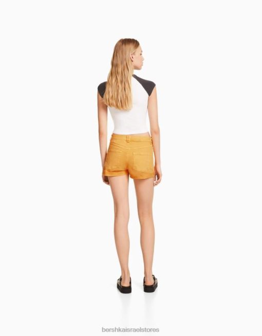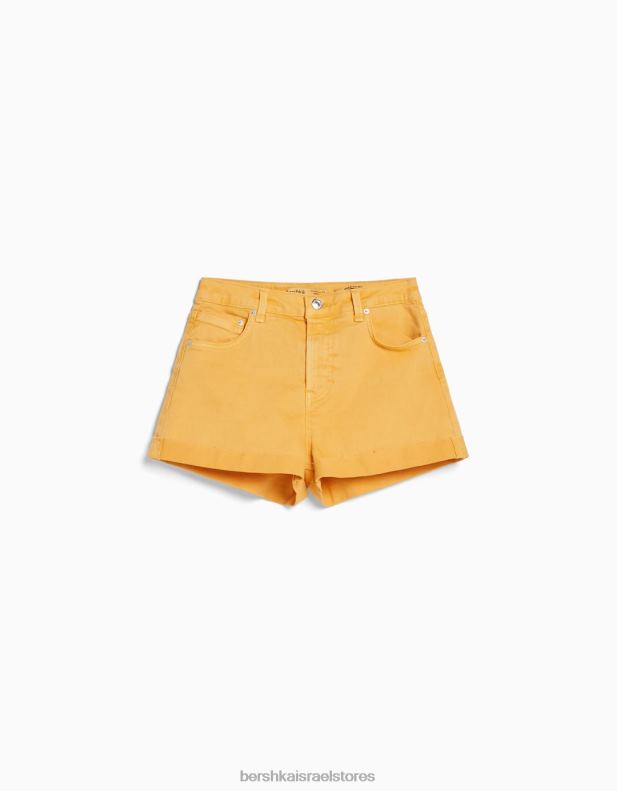 לִשְׁנֵי הַמִינִים מכנסי אריג נוחות עם מכפלות נפתחות צהוב 2L6JD4030 Bershka הַלבָּשָׁה
