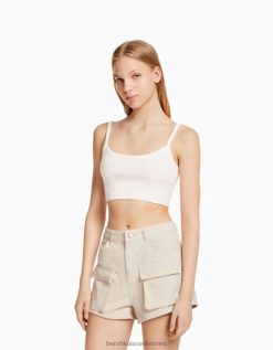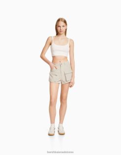 לִשְׁנֵי הַמִינִים מכנסי אריג נוחות עם מכפלות נפתחות צהוב 2L6JD4030 Bershka הַלבָּשָׁה