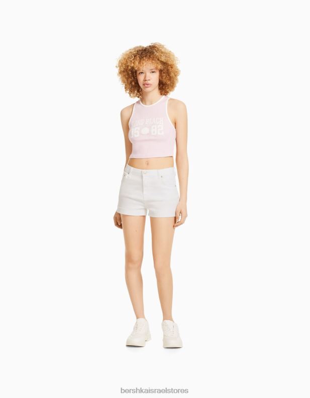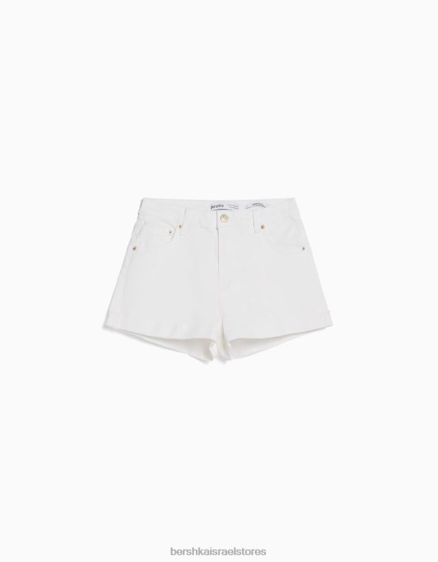 לִשְׁנֵי הַמִינִים מכנסי אריג נוחות עם מכפלות נפתחות לבן 2L6JD4027 Bershka הַלבָּשָׁה
