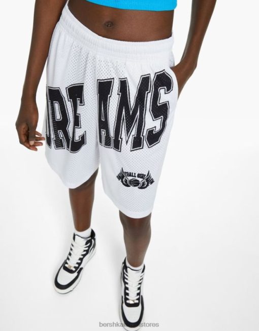 לִשְׁנֵי הַמִינִים מכנסי ברמודה עם הדפס רשת לבן 2L6JD4004 Bershka הַלבָּשָׁה