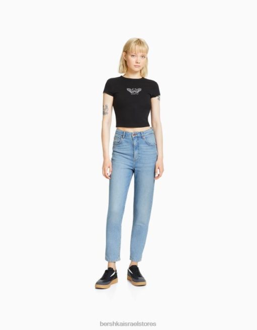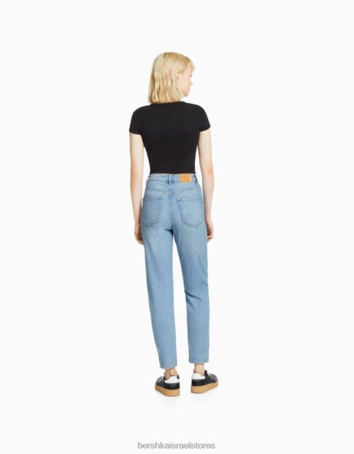 לִשְׁנֵי הַמִינִים מכנסי ג’ינס של אמא בנוחות דקיקה כחול בהיר 2L6JD3920 Bershka הַלבָּשָׁה