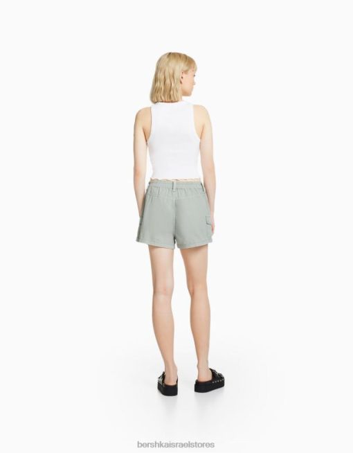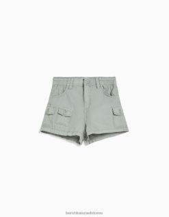 לִשְׁנֵי הַמִינִים מכנסי כותנה מרובים מטען ירוק 2L6JD4040 Bershka הַלבָּשָׁה