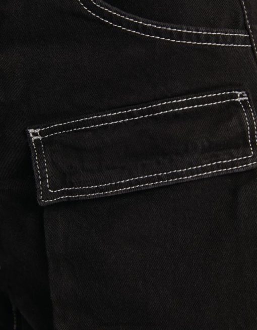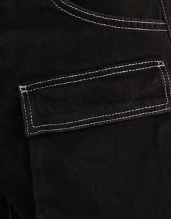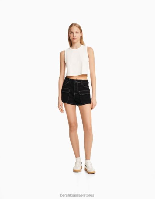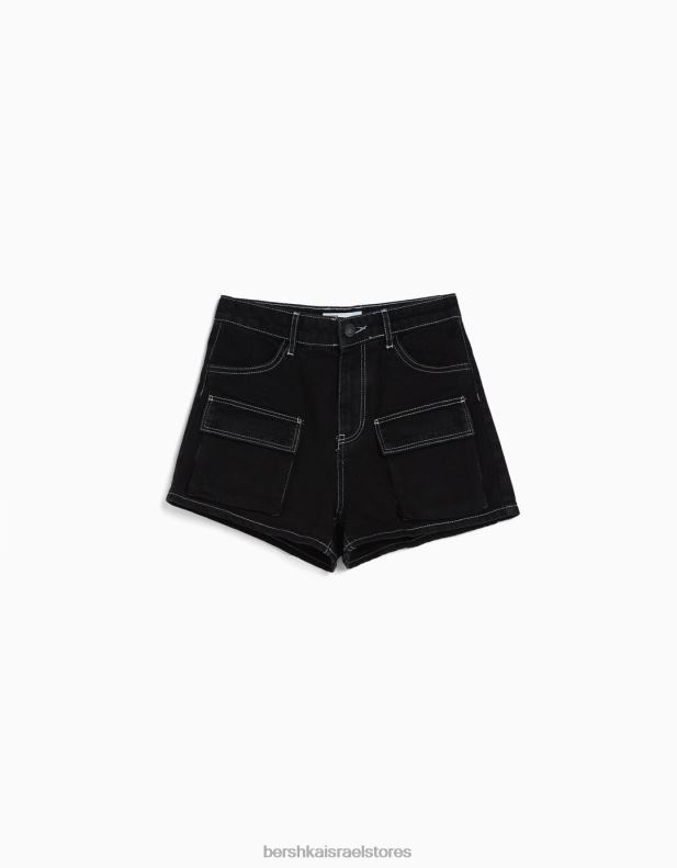 לִשְׁנֵי הַמִינִים מכנסי מטען קצרים מבד ג’ינס שָׁחוֹר 2L6JD4007 Bershka הַלבָּשָׁה
