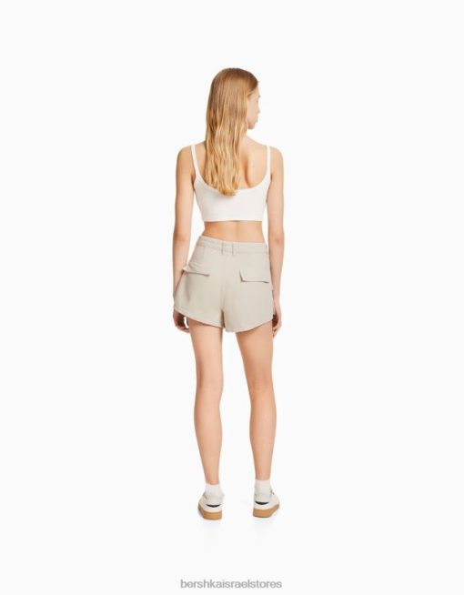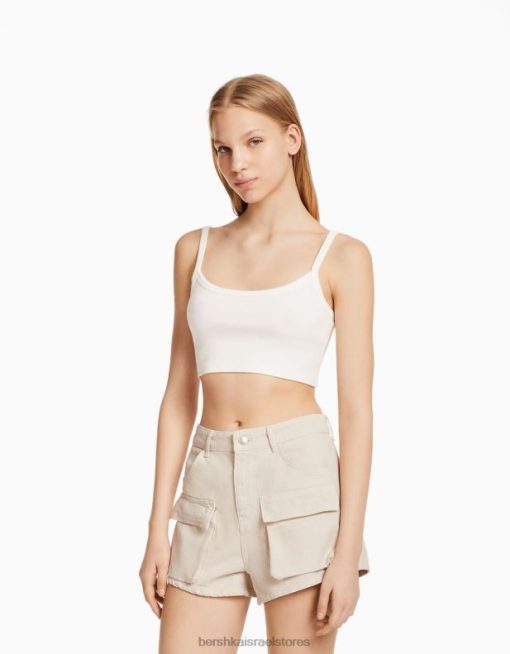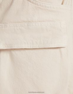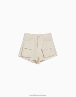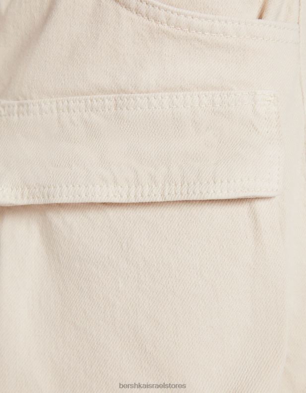 לִשְׁנֵי הַמִינִים מכנסי מטען קצרים מבד ג’ינס צבע קרם 2L6JD4008 Bershka הַלבָּשָׁה
