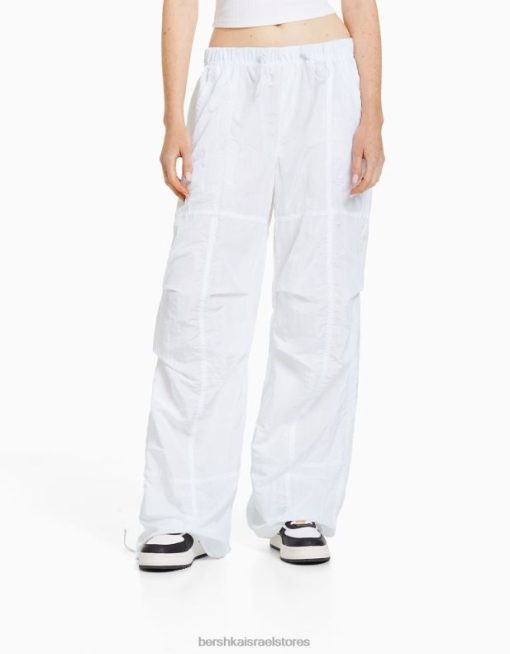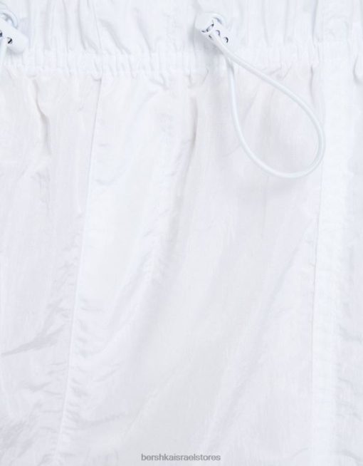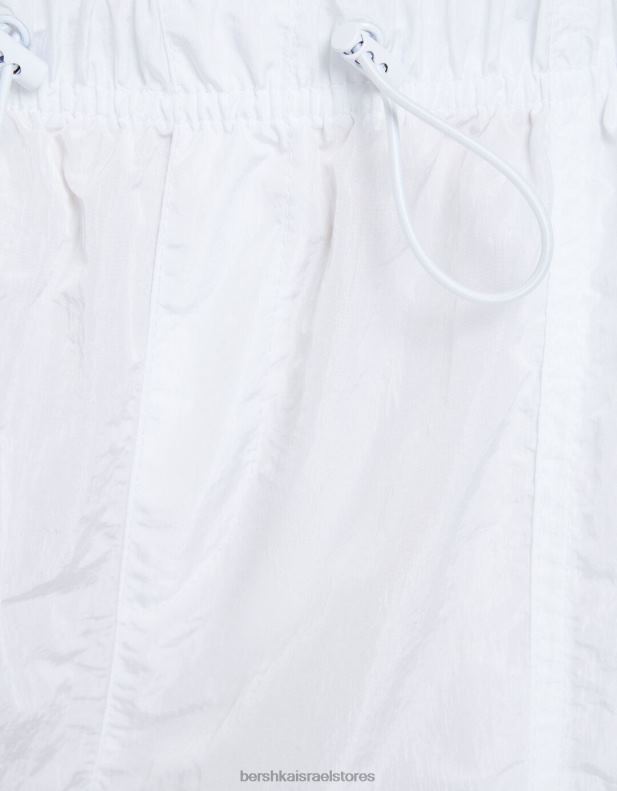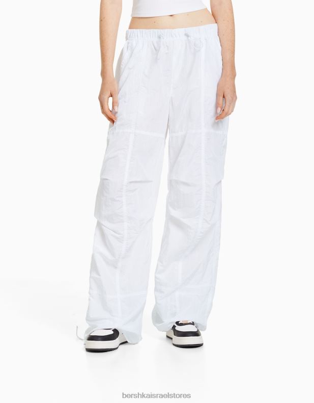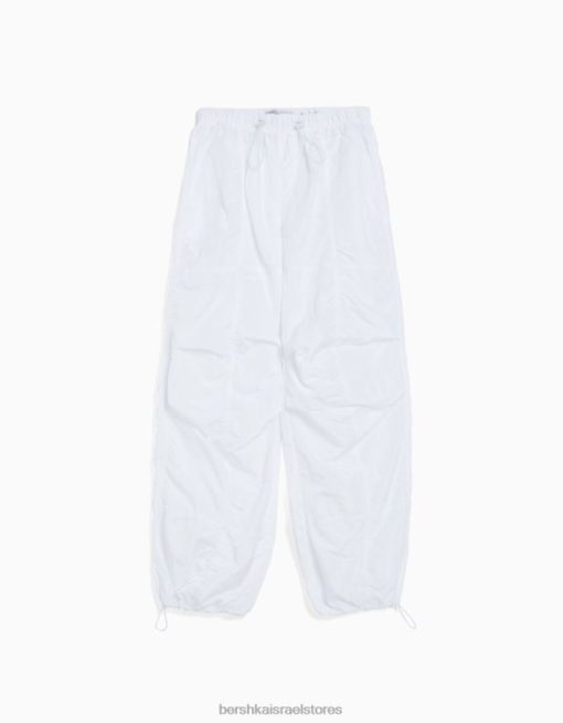 לִשְׁנֵי הַמִינִים מכנסי מצנח ניילון לבן 2L6JD3893 Bershka הַלבָּשָׁה