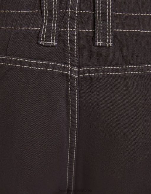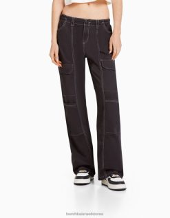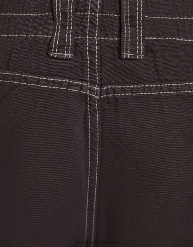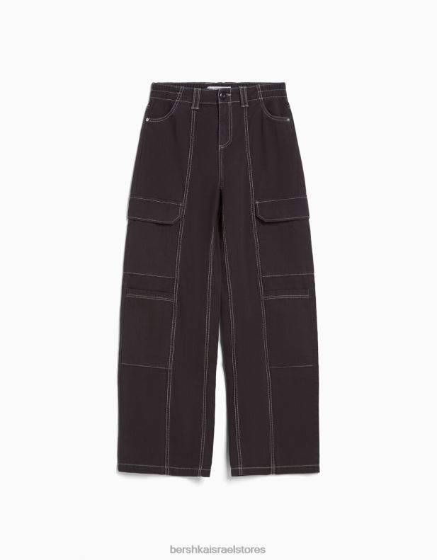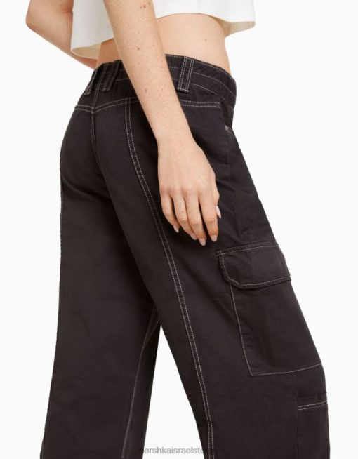 לִשְׁנֵי הַמִינִים מכנסי קרגו מכותנה בגזרה נמוכה עם חוט ניגודי אפור כהה 2L6JD3903 Bershka הַלבָּשָׁה