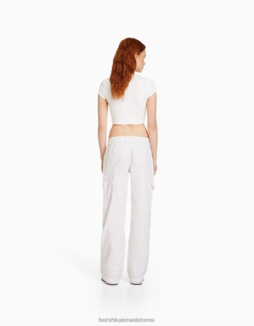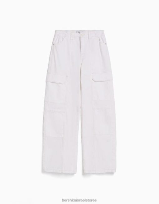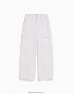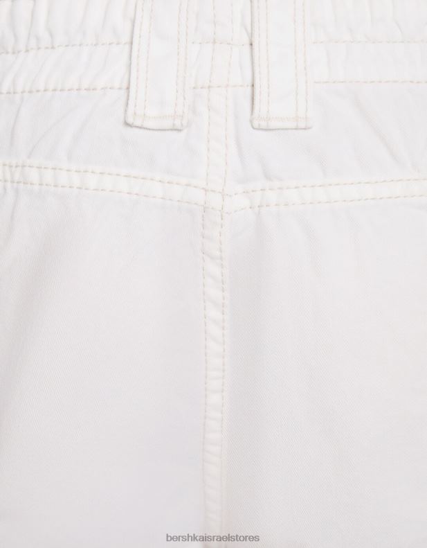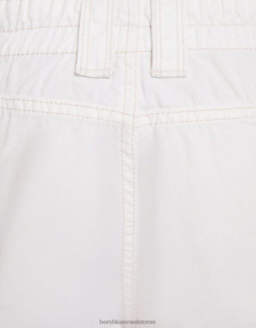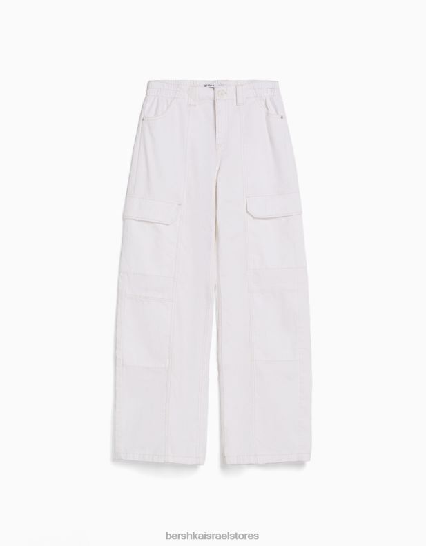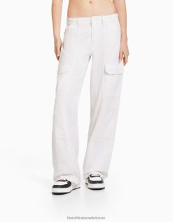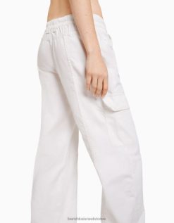 לִשְׁנֵי הַמִינִים מכנסי קרגו מכותנה בגזרה נמוכה עם חוט ניגודי צבע קרם 2L6JD3902 Bershka הַלבָּשָׁה