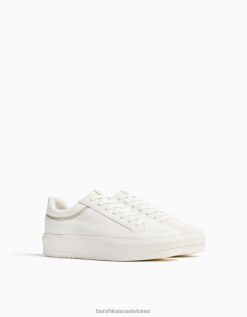 לִשְׁנֵי הַמִינִים נעלי ספורט פלטפורמה עם פרט תפירה לבן 2L6JD4186 Bershka הַנעָלָה